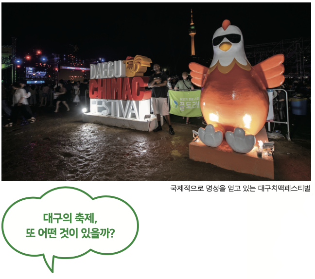 매년 7월 두류공원에선 치킨과 맥주를 주제로 하는 치맥페스티벌이 열린다. 대구는 한국에 널리 알려진 유명 치킨 회사가 여러 개 생겨난 도시인데, 이 전통에 부합하는 대구치맥페스티벌은 1회 행사 때부터 전국적인 화제를 모았다.
