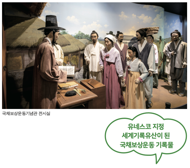 대구에는 2개의 세계문화유산이 있다. 하나는 한국의 서원 9개에 포함되어 있는 도 동서원이다. 또 하나는 세계기록유산인 국채보상운동 기록물이다. 세계사적으로 보존 가치가 있는 서적, 문서, 편지 같은 역사 기록을 세계유산으로 정하는 것인데, 2017년 유네스코는 국채보상운동 기록물을 세계기록유산으로 지정하였다.