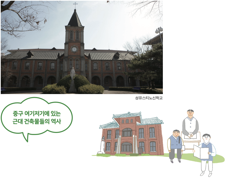 대구 도심에는 사적 제290호인 계산성당을 비롯해 많은 근대건축물이 보전되어 있다. 그중 몇 곳을 살펴보자.