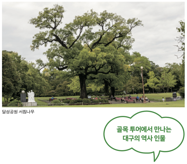 골목 투어 제1코스인 경상감영·달성길을 거닐다 보면 100년이 넘는 역사를 자랑하는 대구종로초등학교를 만날 것이다. 바로 이곳 교정에 ‘최제우나무(회화나무)’가 있다.
