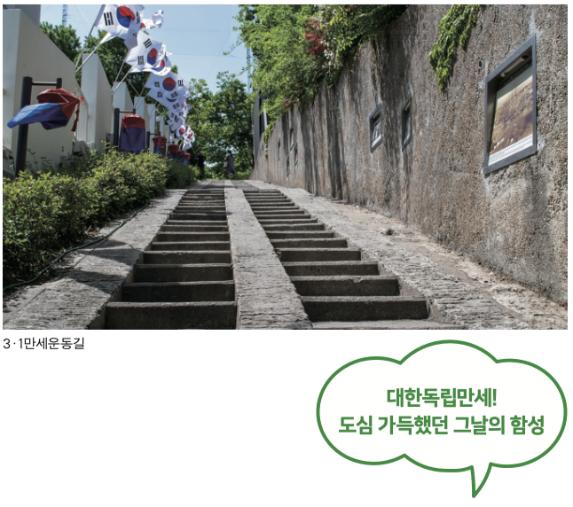 골목 투어 코스 가운데 중구 동산동의 3・ 1만세운동길은 특히 많은 관광객이 찾는 코스이다. 계산성당 맞은편의 90개 돌계단으로 이루어진 좁은 길이지만, 대구의 독립운동역사를 대표하는 공간이다.