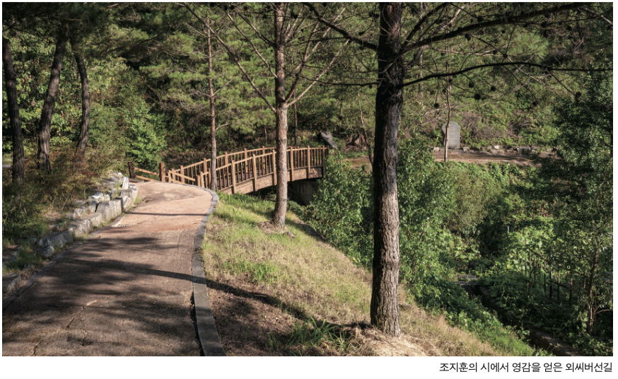 경상북도 북부에 있는 청송군, 영양군, 봉화군은 아름다운 산, 맑은 공기와 물로 유명한 청정지역이다. 이런 깨끗한 자연환경을 활용해 이들 세 지역과 강원도 영월군 지역을 잇도록 조성된 길이 바로 ‘외씨버선길’이다. 볼이 좁고 갸름한 외씨버선처럼 길 모양도 길게 뻗었다고 해서 붙은 이름이다. 영양군 출신 시인인 조지훈의 「승무」에서 영감을 얻었다고 한다. 길을 걷다 보면 문득, “돌아설 듯 날아가며 사뿐히 접어올린 외씨버선이여”라는 시 한 자락이 떠오를지도 모르겠다.