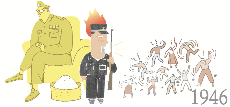 대구 10월 사건은 1946년 10월 1일 대구에서 경찰과 시민들 간의 충돌로 시작된 유혈 사건을 말합니다. 당시는 미국 군정 시기인데 대구의 식량 사정이 무척 좋지 않아서 좌익세력이 중심이 되고 노동자와 일반시민이 참여하는 쌀 획득 투쟁 시위 가 일어났습니다.
