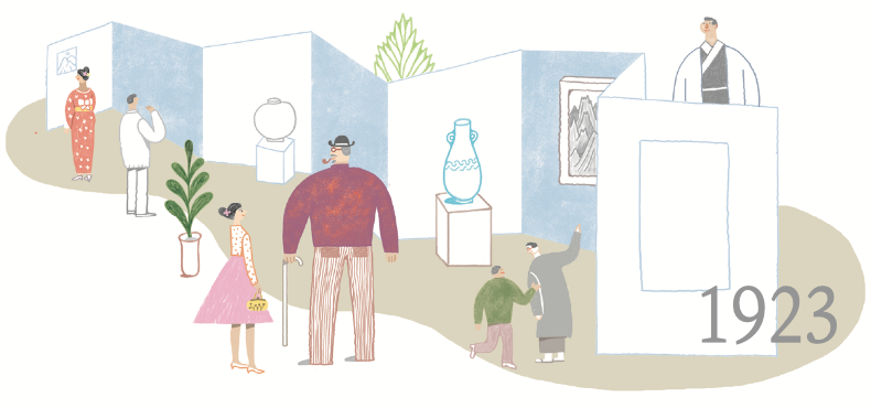 대구에서 최초로 서양미술전람회를 가진 사람은 이상화의 형인 이상정으로 알 려져 있습니다. 비슷한 시기에 전통 서예와 수묵화를 그리는 작가들도 1922년 1월 교남서화연구회를 조직하여 후진도 양성하고, 전시회를 개최하였습니다. 이런 시 대의 흐름 속에서 대구미술전람회가 1923년 10월 21일, 22일 이틀간 대구에서 열 렸는데, <조선시보> 1923년 10월 24일 기사에 의하면 이 전시의 협찬회장은 일본인 마쓰이였습니다. 출품작은 주로 서화였지만 그 가운데는 신라시대를 전후한 불 상과 도검류 등 고미술품도 많았다고 합니다. 이처럼 일찌감치 우리 고미술품과 유물의 우수성을 인식하고 있었던 일본인 중에는 이후 우리 문화재의 수집과 일본반출에 앞장선 사람들도 있었습니다. 오늘의 역사 1895년 대구우체사 개사 2020년 대구초등수학체험센터 개관