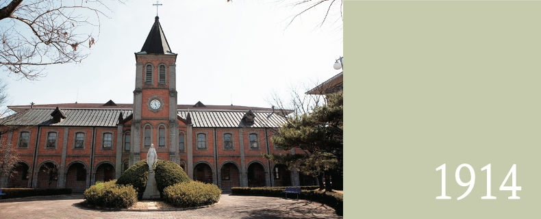 1914년 10월 3일 성유스티노신학교가 첫 신입생을 맞았습니다. 학교는 많은 천 주교 신도들의 정성으로 개교할 수 있었습니다. 천주교 대구교구 초대 교구장이었 던 안세화 주교(프랑스 이름은 드망즈)가 신학교를 세우려 하자 어떤 이는 건축비 를 보태고 어떤 이는 자신의 땅을 학교 부지로 기증하였습니다.