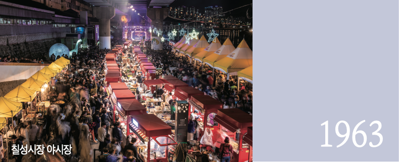 1963년 신문에 3월 11일 경상북도에서 대구공설야시장을 개설하였다는 기사가 실렸습니다. 전기 사정이 여유롭지 않았던 1960년대의 야시장 풍경은 지금과는 사뭇 풍경이 달랐을 것입니다. 바람에 흩날리는 희미한 카바이드 불빛 아래 좌판이 펼쳐진 곳이었고, 야간 통행금지 탓에 영업시간도 길지 않았을 것입니다.