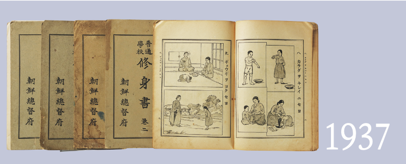 일제의 민족정기 말살 정책은 1910년 한일 강제합병 이전에 이미 추진되었습니 다. 일제의 조선통감부는 1908년 <교과용 도서 검정 규정>을 공포하여 조선인의 민족정신이 담긴 교과서에 대한 제재를 하였습니다. 1911년에는 <조선교육령>을 공포하여 ‘국어’라는 명칭 대신에 ‘조선어’를 사용하게 하고, 대부분의 교과서를 일본어로 기술하게 강제하였습니다. 이런 상황에서 조선의 학생들에게 일본어는 조선어보다 학교에서 더 자주 접해야 하는 문자가 되었습니다.