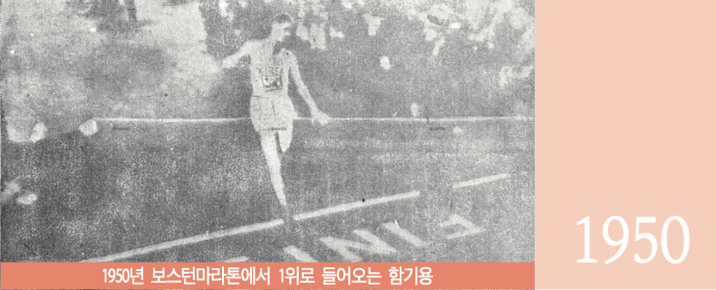1897년 첫 대회가 열린 이후 매년 미국 매사추세츠주 보스턴에서 열리는 보스턴 마라톤은 한국과 인연이 많은 대회입니다. 1947년에 열린 51회 대회에서 한국인으로서 처음 참가한 서윤복이 2시간 25분 39초의 신기록으로 1위를 차지했고, 1950 년 54회 때는 함기용, 송길윤, 최윤칠이 1~3위를 차지해 세계의 화제가 되었습니다. 그 당시 한국팀의 감독은 1936년 베를린올림픽 마라톤에서 금메달을 딴 손기정이었습니다.