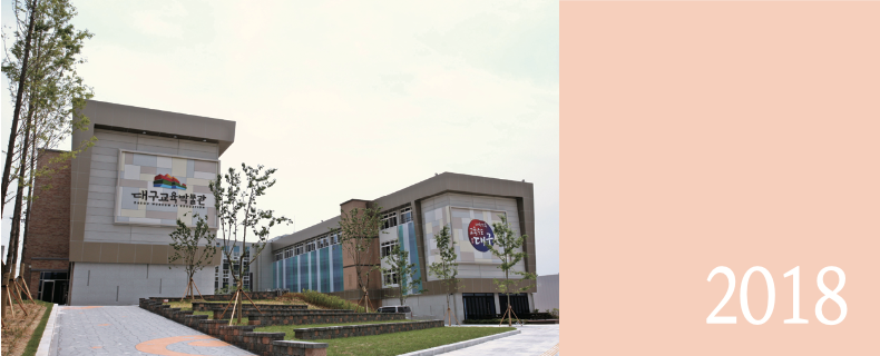 2018년 6월 15일 개관한 대구교육박물관은 대구교육청이 3년간 준비하여 거둔 소중한 성과였습니다. 새로 박물관을 짓지 않고 2017년 폐교된 대구대동초등학교 건물을 리모델링하여 멋진 교육문화공간을 창조하였습니다. 개관 당시 대구교육박 물관은 영남권 최초의 교육박물관으로 상설전시장은 약 2만 점의 교육 관련 전시 물을 갖췄는데 그중에는 대구의 시민들이 기증한 자료도 많았습니다.
