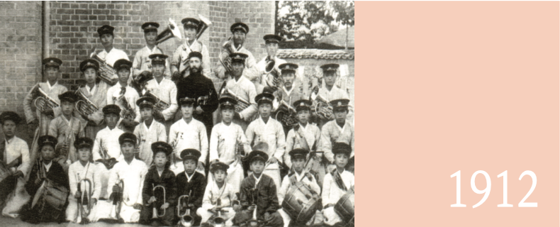 대구 최초의 음악대(音樂隊)는 1908년 천주교 산하 학교였던 성립학교에서 만들 어진 ‘신호나팔대’였습니다. 이어 1912년 계산동성당에서 ‘명도회 악대’가 창단되 었고, 1917년 계성학교에 음악대가 만들어졌습니다. 일제 강점기에도 대구에선 많 은 음악활동이 있었습니다. 작곡가 박태준, 성악가 김문보, 권태호 등이 명성을 날 렸으며 계성찬양대, 대구현악단, 대구합창협회 등 음악단체들이 활동했습니다.