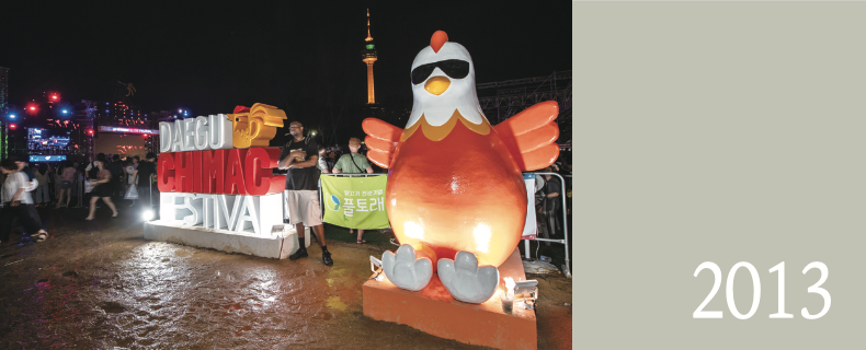 축제 성공의 첫 조건은 주제의 참신함과 매력입니다. 2013년 대구에서는 그런 축제가 하나 탄생했습니다. 치킨과 맥주를 주제로 두류공원 야구장에서 열린 제1회 대구치맥페스티벌이었습니다. 대구와 경북은 치킨 관련 인프라와 전통을 가진 지 역입니다. 1970년대부터 경북 경산, 의성 등의 지역에 양계장이 많았고, 대구에서 는 치킨 프랜차이즈 기업이 여럿 생겼습니다.