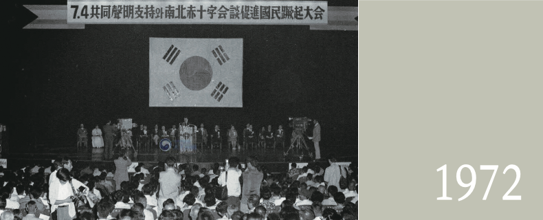 1972년 7월 4일 서울과 평양에서 깜짝 놀랄 뉴스가 발표되었습니다. 한국과 북 한이 공동 서명한 성명이 발표된 것입니다. 이것은 한국과 북한이 합의한 최초의 문서였습니다. 공동성명의 주요 내용은 다음과 같았습니다. ‘첫째, 통일은 외세에 의존하거나 외세의 간섭을 받음이 없이 자주적으로 해결하여야 한다. 둘째, 통일은 서로 상대방을 반대하는 무력행사에 의거하지 않고 평화적 방법으로 실현하여야 한다. 셋째, 사상과 이념, 제도의 차이를 초월하여 우선 하나의 민족으로서 민족 대 단결을 도모하여야 한다.’