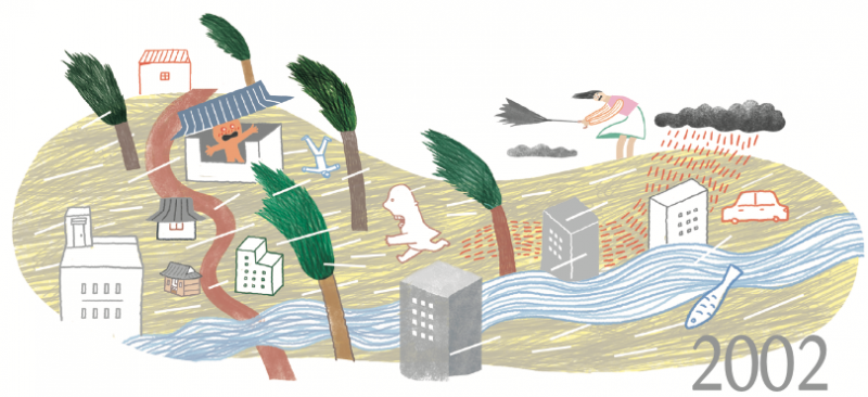 태풍은 북태평양에서 발생하여 강력한 폭풍우를 동반하는 저기압을 말합니다. 태풍이 무서운 것은 강한 바람과 많은 비로 피해를 주기 때문입니다. 2002년 8월 31일 태풍 ‘루사’가 한반도를 강타했습니다. 최대 풍속 초속 40m의 루사는 강릉 지역에 기록적인 폭우인 871mm 등 전국에 많은 비를 퍼부었습니다. 루사로 인해 246명이 사망하거나 실종됐으며, 재산 피해는 약 5조 1400억 원이나 되었습니다.