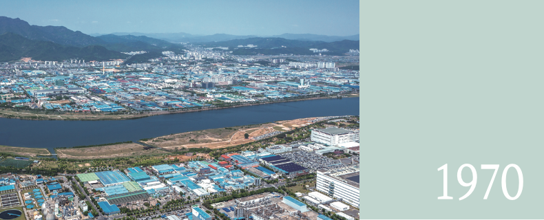 1960년대까지 대한민국은 농업이 경제에서 가장 큰 비중을 차지하는 나라였지 만, 1960년대 후반부터 정부는 더 잘사는 나라를 만들기 위해 공업 진흥 정책을 추 진하며 전국 여러 도시에 공업단지 조성사업을 기획했습니다. 영남 지역 공업화의 축으로 해안에 인접한 울산을 중화학공업 중심지, 구미는 대구와 연계해 섬유 전자 산업에 중점을 둔 내륙공업단지로 기획하여 1968년 정부는 구미 지역을 공업개발 장려지구로 지정했습니다. 그리고 이 계획을 구체화한 상공부에서 1970년 8월 24 일 구미시에 전자공업단지를 조성하기로 결정하였습니다.