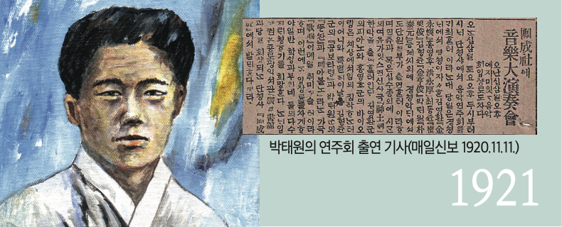 대구 음악사에는 근대에 대구 음악 발전에 업적을 남긴 형제가 있습니다. 박태 원, 박태준 형제입니다. 형 박태원은 대구 계성학교와 서울에 있는 연희전문학교 (현 연세대학교)를 졸업했습니다. 그는 연희전문학교 재학 때 방학이면 고향 대구 로 내려와 학생들에게 가사를 번역한 외국의 명곡을 가르쳤습니다. 그리고 1917년 에 대구에서 처음으로 혼성 합창단 발표를 대구제일교회에서 열었습니다.