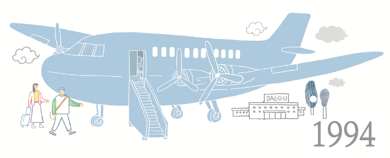 대구시 동구에 있는 대구국제공항의 역사는 1961년 부산비행장 대구사무소 설 치에서 시작되었습니다. 이 해에 대구와 김포(서울) 국내선 노선이 생겼습니다. 그 리고 이듬해인 1962년 대구비행장으로 개항하였습니다. 대구공항에 국제선이 처 음 취항한 것은 1994년 8월이었습니다. 대한항공에서 일본 후쿠오카 노선 전세기 를 처음 운항한 것입니다.